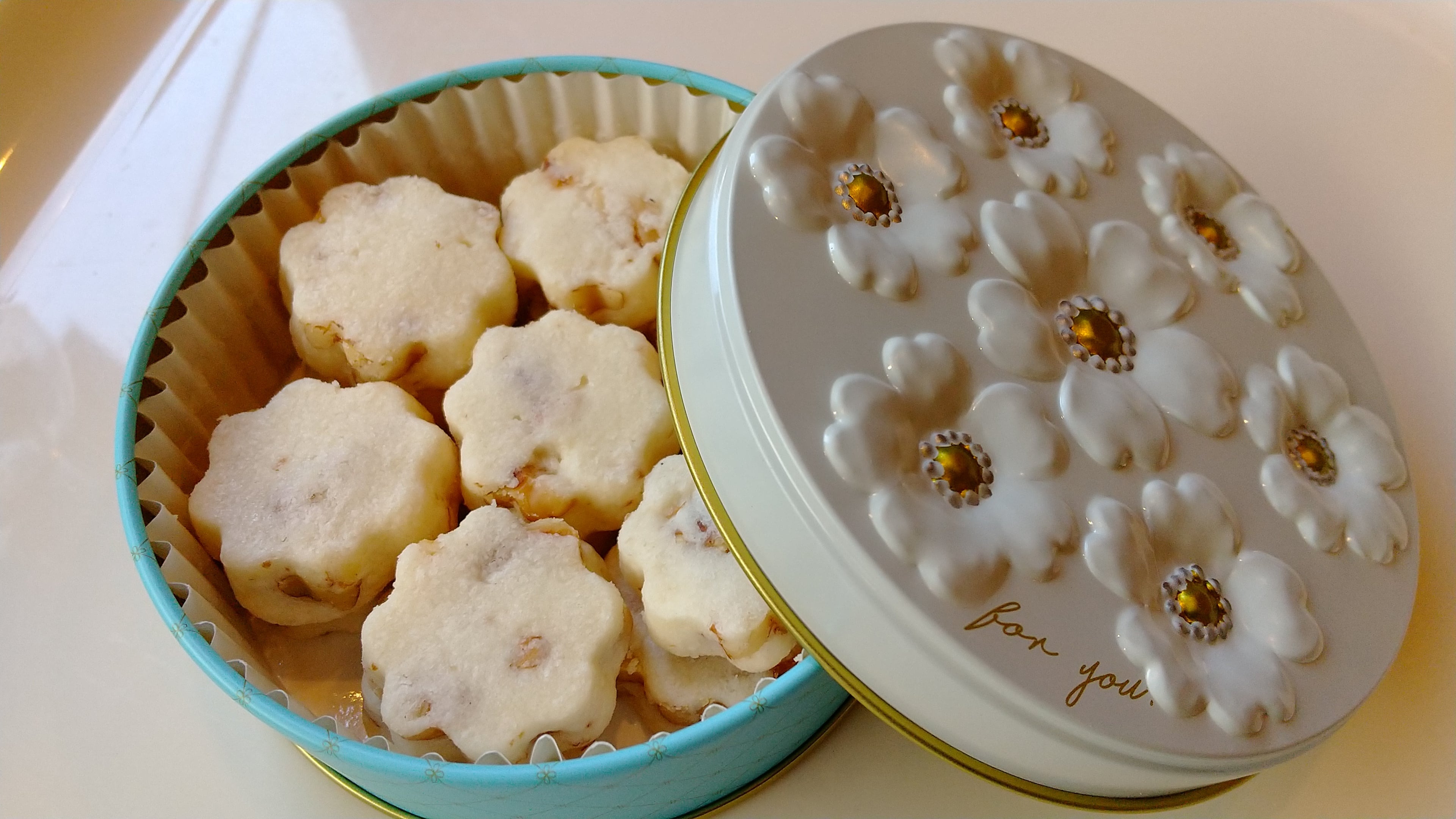 ☆カルピスバターを使用したショートブレッド缶 くるみ(お菓子のミカタ・ブーケ缶)